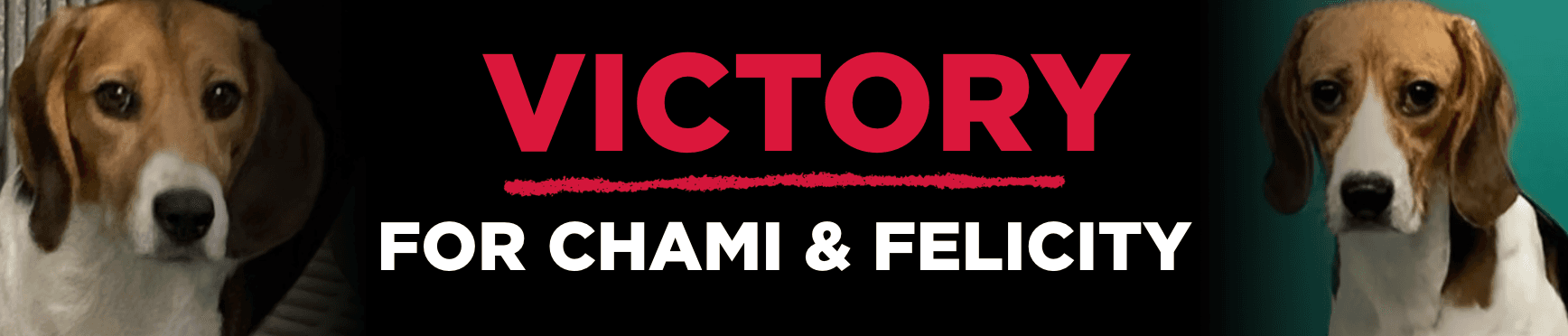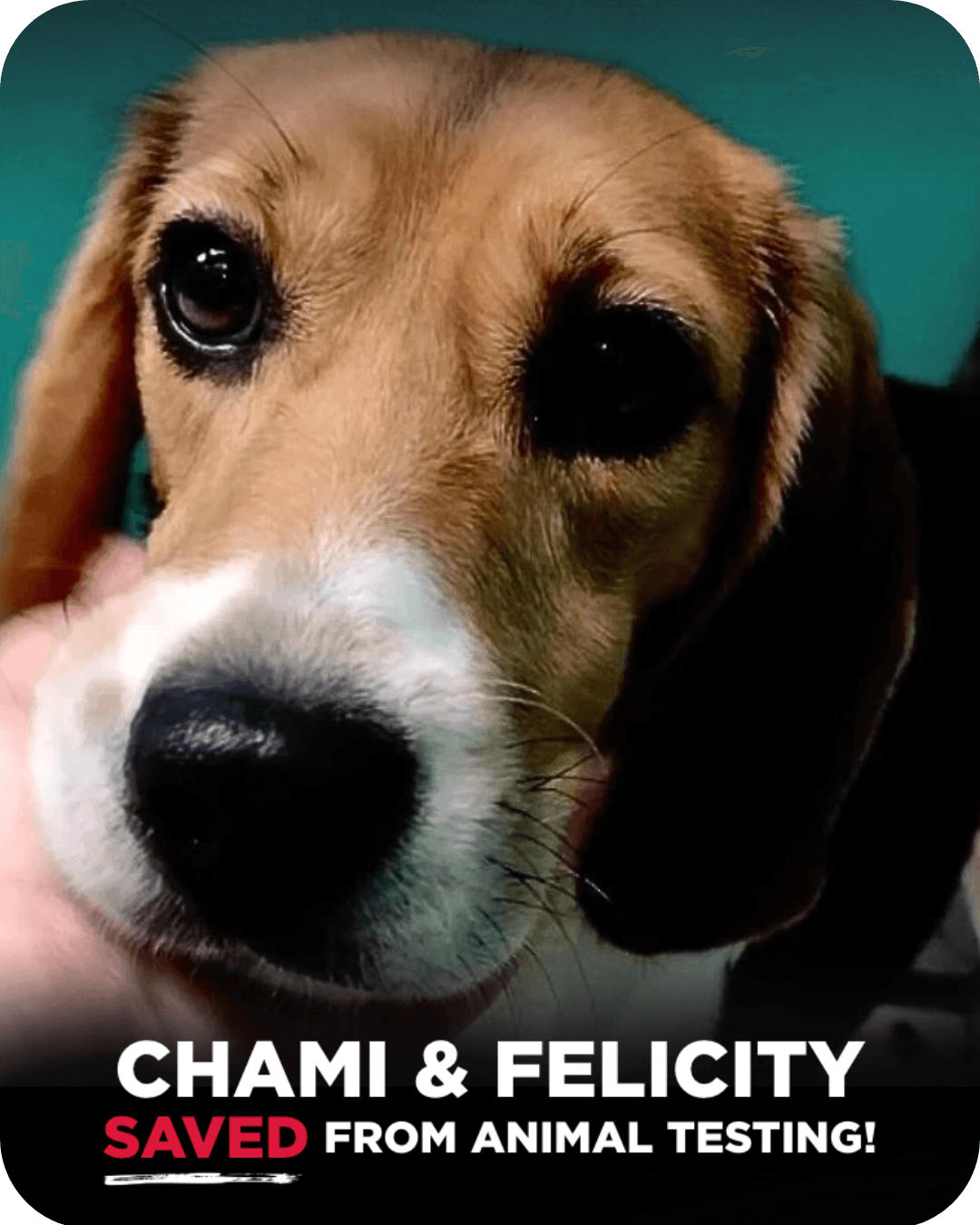 But this fight isn't over. While Chami and Felicity have been spared from fatal animal testing experiments, thousands of dogs still suffer in laboratories worldwide.